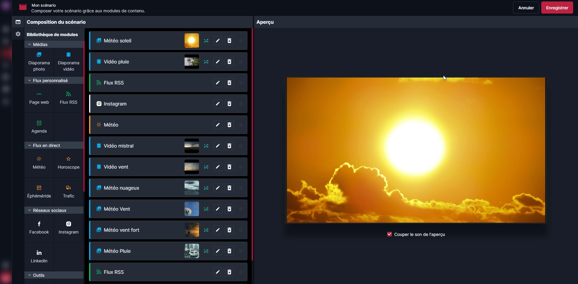 👉 Météo, QR codes, flux RSS, réseaux sociaux, diaporamas d’images ou vidéos… Tout est accessible sans expertise technique.